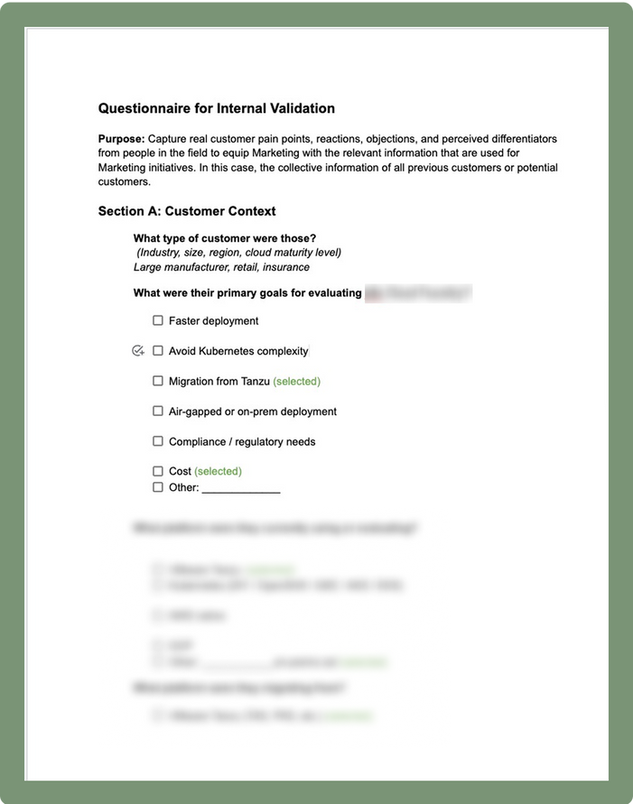 To test and refine the clusters, I created a structured questionnaire for customer-facing teams: